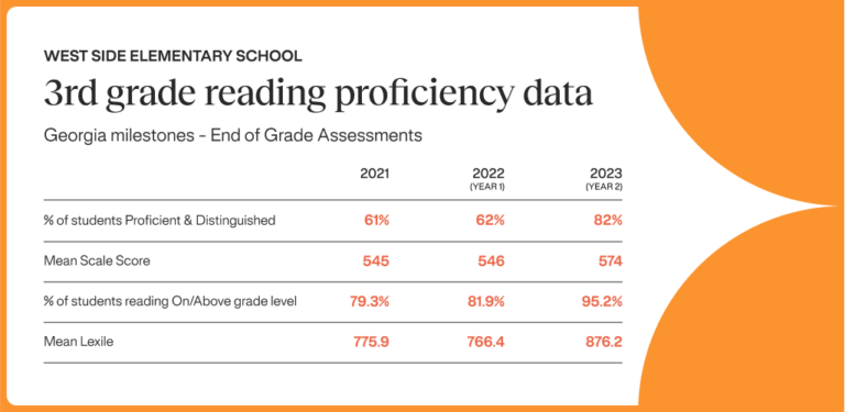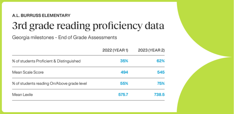 “And so we were thrilled with our results this past school year, where we saw 62% of our students who are proficient & distinguished and we’re proud to share that that was the second highest growth in that number in the state of Georgia. We are very, very excited to share that. We still have a long way to go. But we are very optimistic, as students matriculate through our district and through our school. So every year as we push students up into third grade, we are very optimistic that we’ll have everyone reading as children deserve to do.”
